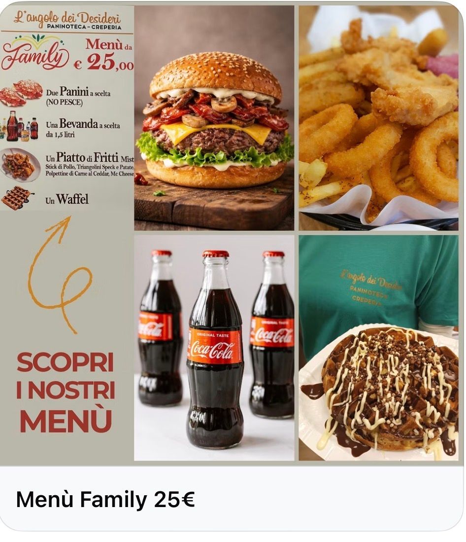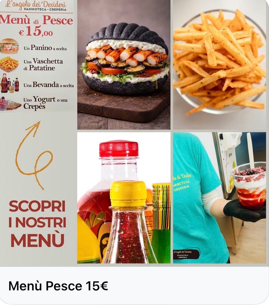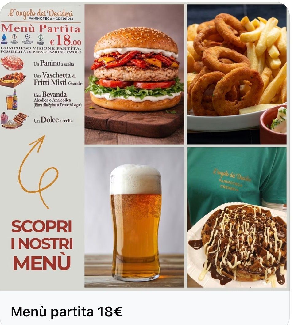 Da L’Angolo Dei Desideri trovi il format ideale quando hai voglia di una serata semplice, ma fatta bene: una paninoteca e creperia artigianale dove la qualità parte dalle basi e si riconosce al primo assaggio. Il locale è informale e accogliente, pensato come punto di ritrovo serale per chi vuole mangiare bene senza complicazioni. In cucina prepariamo tutto al momento: dal kebab ai panini farciti, dalle piadine agli hot dog, fino alle crepes, con ingredienti freschi e combinazioni curate.